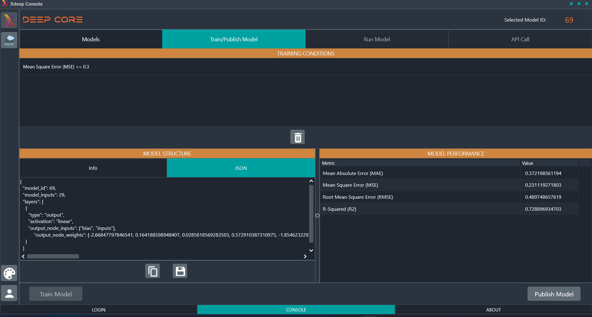 Publish models for execution through the API, making them accessible for real-time predictions.